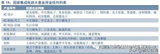 “产业+资本”成为产业发展重要手段,集成电路产业基金累计支持资金超过 7000 亿元。2014年 10 月,中国成立国家集成电路产业投资基金(简称“大基金”),“大基金”首批规模达到 1200 亿元,加之超过 6000 亿元的地方基金以及私募股权投资基金,中国有望以千亿元基金撬动万亿元资金投入集成电路行业。截至 2017 年底,国家集成电路大基金共决策投资 62 个项目,累计项目承诺投资额 1387 亿元,已实施项目涵盖 IC 产业上、下游,制造、设计、封测、设备材料等产业链各环节投资比重分别是 63%、20%、10%、7%。