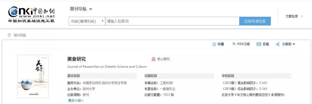 是国内美食领域唯一的核心期刊