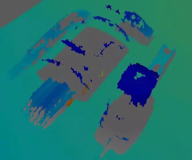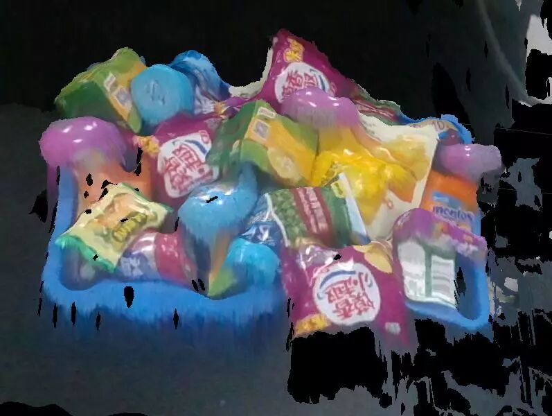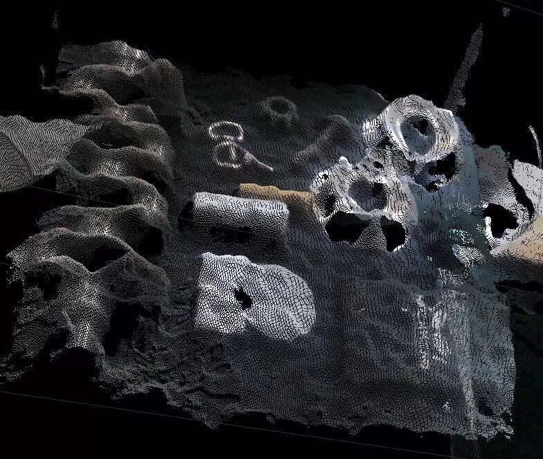 Mech-Eye Enhanced系列3D相机输出的点云图更加完整、详细和准确,而其他典型产品不能够很好地识别黑色网架结构的物体,点云图缺失较为明显。