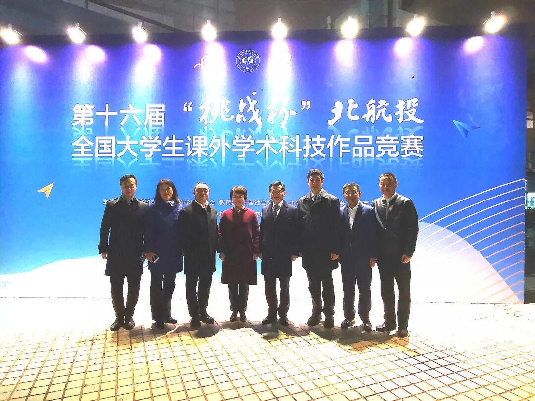 第十六届“挑战杯”由共青团中央、中国科协、教育部、中国社会科学院、全国学联和北京市人民政府共同主办,北京航空航天大学承办。北航投资作为本届“挑战杯”的独家冠名赞助单位,董事长夏炜、股东王文清、许泽玮、金涌,王剑飞,刘付华、黄凌峰一行在会前获北京航空航天大学党委书记曹淑敏和校长徐惠彬的热情接见并受邀出席开幕式,与现场3000余人一起见证了这一充满北航特色的非凡盛典。
