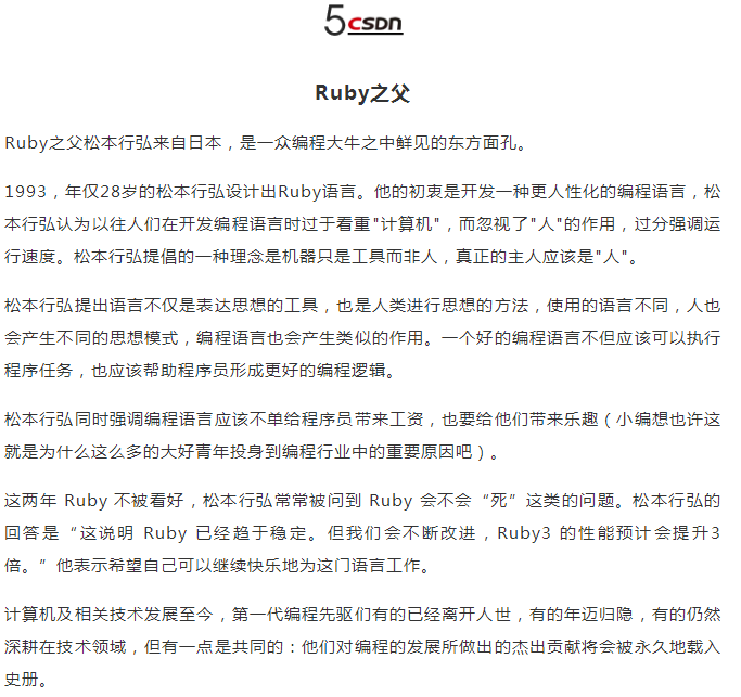 从世界上第一台计算机(ENIAC) 于1946年2月在美国诞生至今的七十多年里,涌现出了许多优秀的计算机编程语言。程序员们在使用它们编写程序的时候,一定很好奇发明这些语言的发明者背后的故事,以及他们现状,是像Python 之父一样功成身退,还是继续奋战在编程一线。