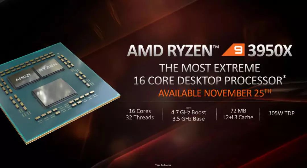 今天, AMD 公布旗舰级 16 核锐龙 9 3950X 处理器,这款让粉丝翘首以盼的处理器将于 2019 年 11 月 25 日全球上市。锐龙 9 3950X 是 AMD 带给游戏玩家的终极处理器,作为 16 核消费级台式机产品的巅峰之作,它将为 3A 大作玩家带来更强悍的极致性能表现和更高能效比。此外,AMD 还公布全新速龙 3000G 处理器将于 2019 年 11 月 19 日上市,为主流台式机用户带来显著的性能提升。