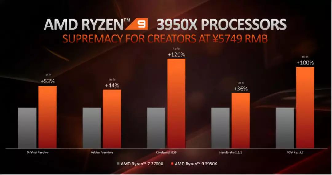 AMD 锐龙 9 3950X 基于业界领先的“Zen 2”架构,比上代锐龙处理器性能提升 22%。在 3A 游戏大作以及内容创建方面的表现直达巅峰水平。同时还提供了极为出色的功耗比表现,其 TDP 仅为 105W。