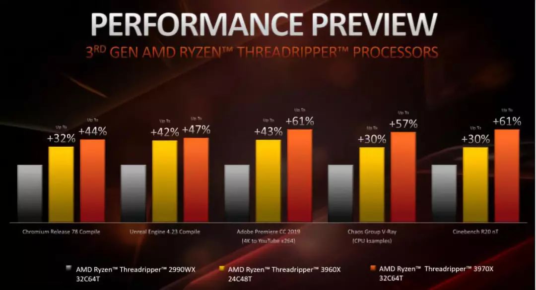此外,AMD 还公布其顶级台式机处理器家族再添强力新成员:拥有 32 核的 AMD 锐龙 Threadripper 3970X 处理器和拥有 24 核的锐龙 Threadripper 3960X 处理器。这两款产品都将于 2019 年11 月 25 日在全球范围上市,专为满足应对苛刻工作负载的台式内容创建平台而打造,其领先技术将为专业内容创建者、开发者以及发烧友带来突破性的性能表现。