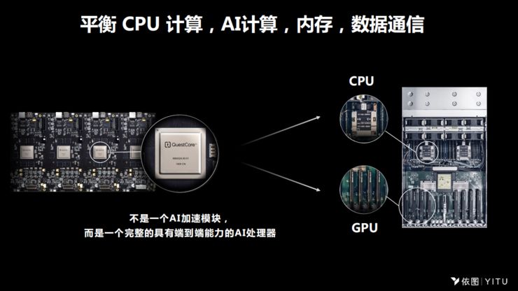 依图的AI芯片不是一个AI加速器,而是具备了一个完整的端到端处理能力的AI处理器。我们在设计芯片的时候,很好地平衡了CPU的计算、AI的计算、内存和数据通信之间的关系,这样可以更大程度地提升整体计算的效果。