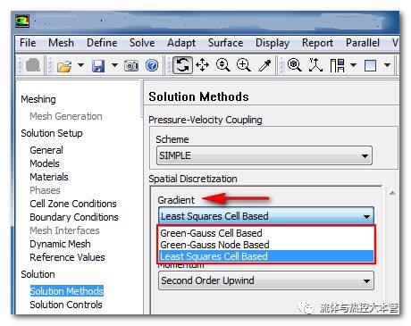 软件默认的是Least Squares Cell-Based方法,而且相信很多人在仿真时候,对于Gradient的离散方法都是采用默认的。
