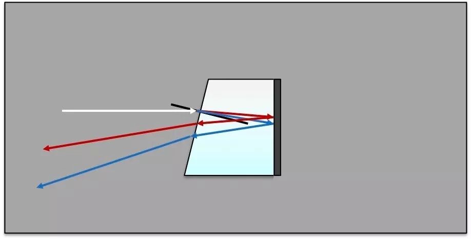 对于棱边的镜子,背后镀了一层银,其作用相当于把一个对称的棱镜折叠了一下。最终的效果还是把不同颜色的光分开,呈现出我们看到的彩色光斑。