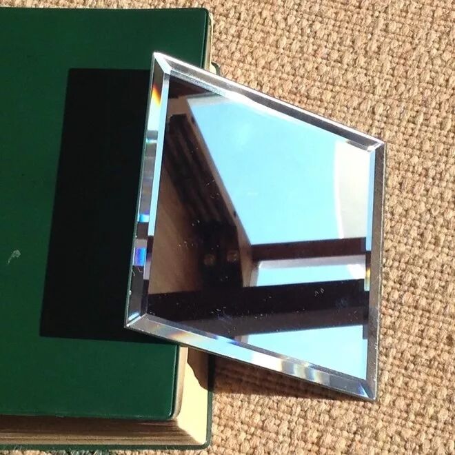 谈到棱镜,大家都知道那位非常牛的牛顿,曾经用棱镜,将太阳的白光分解成了彩色的光带。我们现在,在学校和科技馆经常会看到类似的实验。当然,棱镜在普通的商店并不容易买到,不过我们可以寻找替代的器材,像这种棱边的镜子就可以用来做这个实验。