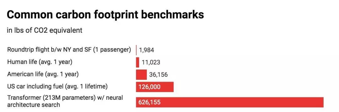 过去,人工智能经常被比作石油行业:一旦对(数据 / 石油)进行开采、精炼,就可以变为高利润的商品。现在看来,人工智能在能耗层面的表现也可与石油行业一较高下。根据最新的论文结果,训练一个 AI 模型产生的能耗多达五辆汽车一生排放的碳总量。