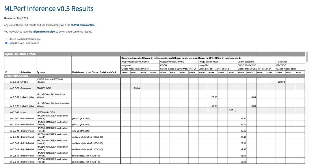 推理性能公布了测试基准MLPerf v0.5以及各公司的