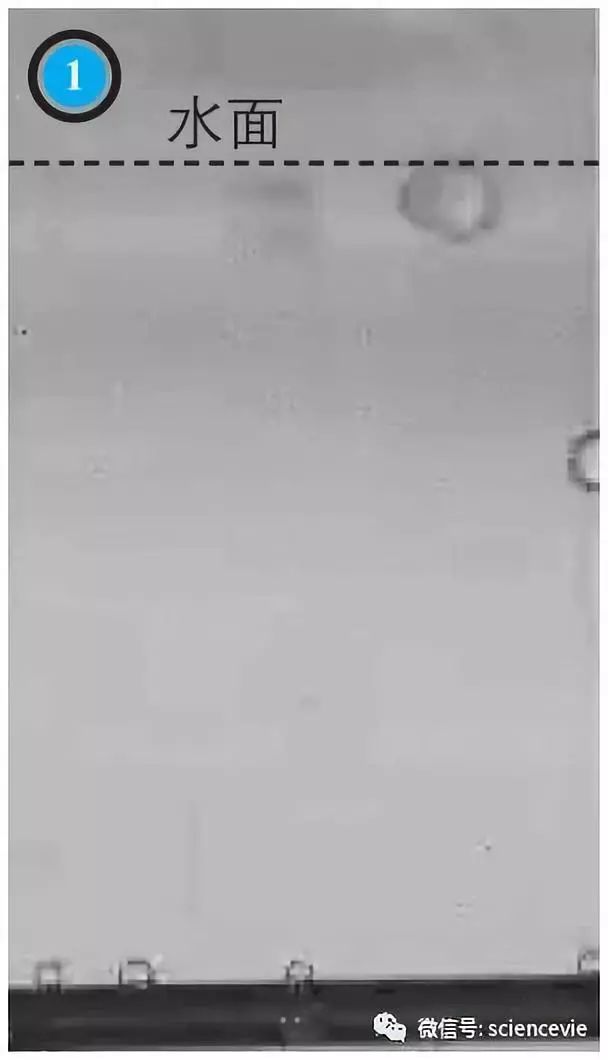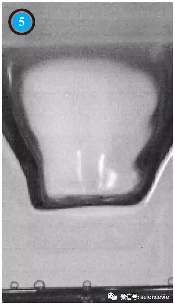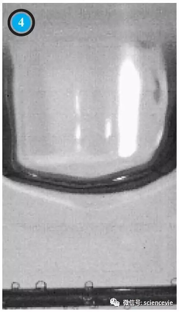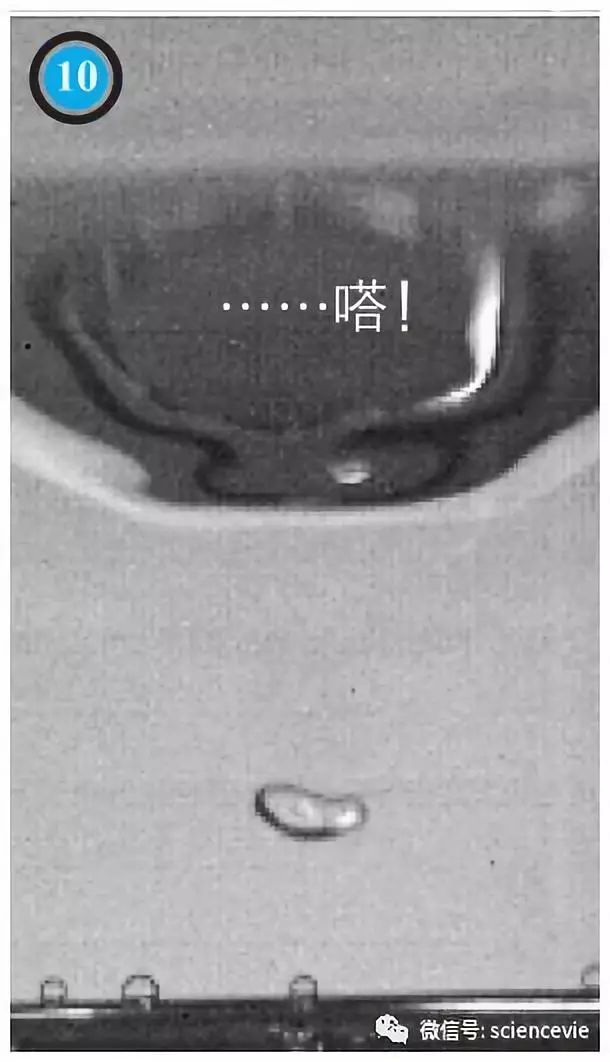 换言之,滴水声并非源自水滴和水槽中水的碰撞!碰撞是在无声中进行。继续观察。空腔不断向下凹陷(图3和4),