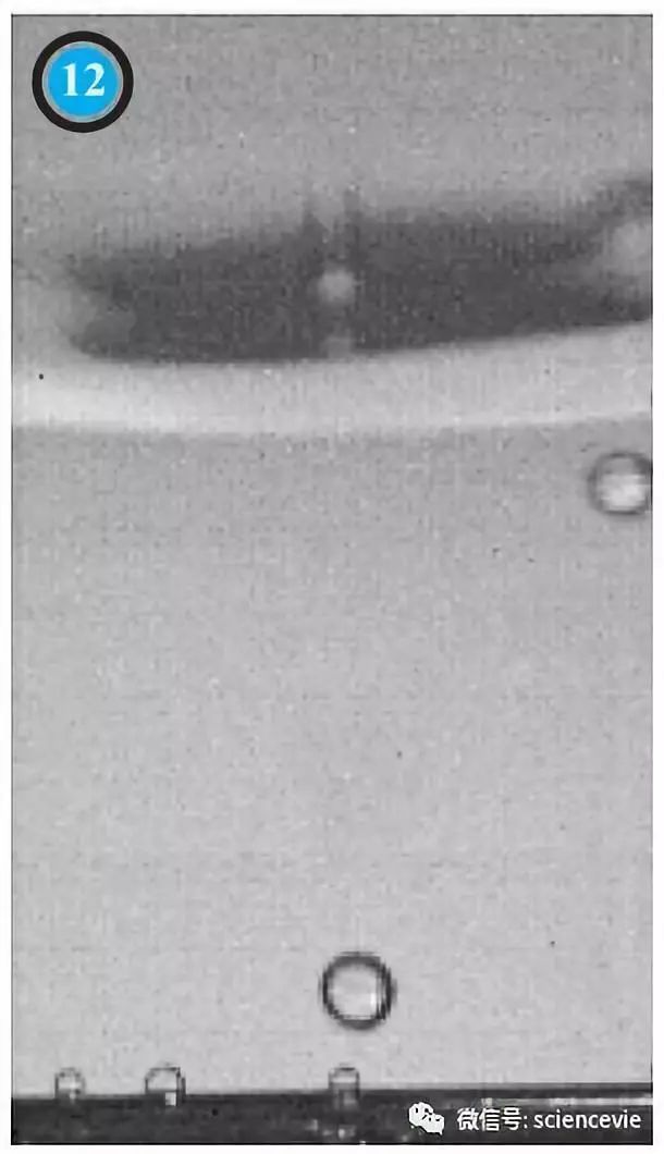 一旦脱离,气泡就会振动(图10、11和12),其形状在几微秒内不断变化。