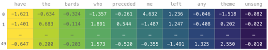 如果图像为彩色的,那么每个像素都用三个数字表示——各有红、绿、蓝三色的值。在这种情况下就需要第三个维度了(因为每一格只能包含一个数字)。因此,一幅彩色图像要用维度的多维数组表示(高x宽x3)。语言如果要处理文本,情况会困难一些。用数字表示文本要求建立词汇表(模型已知的所有独有单词列表)这一步和嵌入步骤。一起来看看用数字表示这一句(翻译过来的)古话吧:“Have the bards who preceded me left any themeunsung?”在用数字表示这名尚武诗人略显焦虑的词汇之前,需要让模型观看大量文本。可以将一小个数据集提供给模型,并用这个来建立(含71290个单词的)词汇表:
