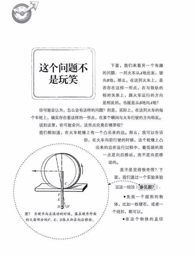 这里面的讲解很多有趣的现象,比如在一辆行进的火车上,有一个点却是往后开的。这个点是什么点呢?