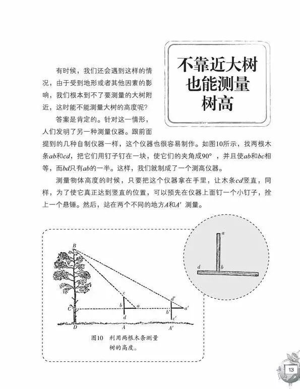 要怎么才能在不靠近树的情况下,又能测得树的高度呢?相信这个问题很多家长也想知道。这个问题作者在书中也有说明,家长也可以和孩子,一起在书中探索答案~