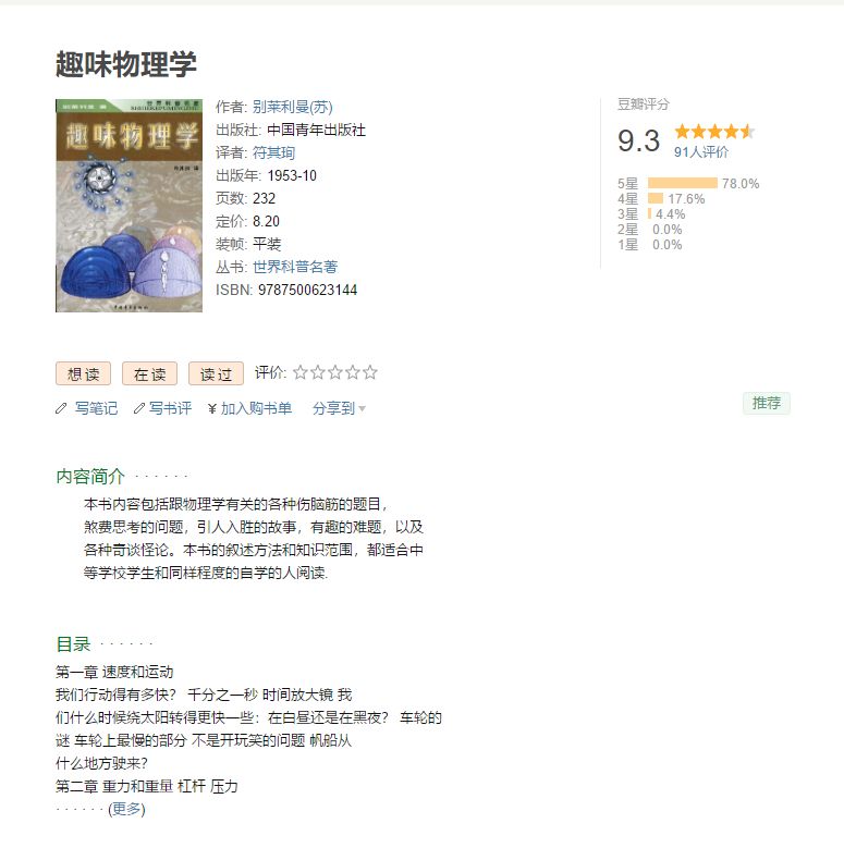 《趣味物理学》是国际上知名的青少年科普读物,旧版本的《趣味物理学》在豆瓣上,也有着9.3的高分推荐!