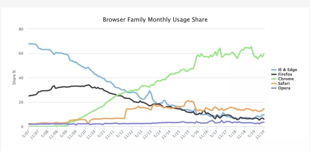 在IE浏览器和火狐浏览器占据绝对优势的浏览器市场,皮查伊领导的Chrome团队令人大跌眼镜地杀出一条血路,打了一场漂亮的后来居上战役。2010年夏天,Chrome浏览器市场份额首次突破10%,IE浏览器份额跌破50%,火狐浏览器34%;到了2012年夏天,Chrome市场份额首次超过IE和火狐,一举成为全球最大浏览器。