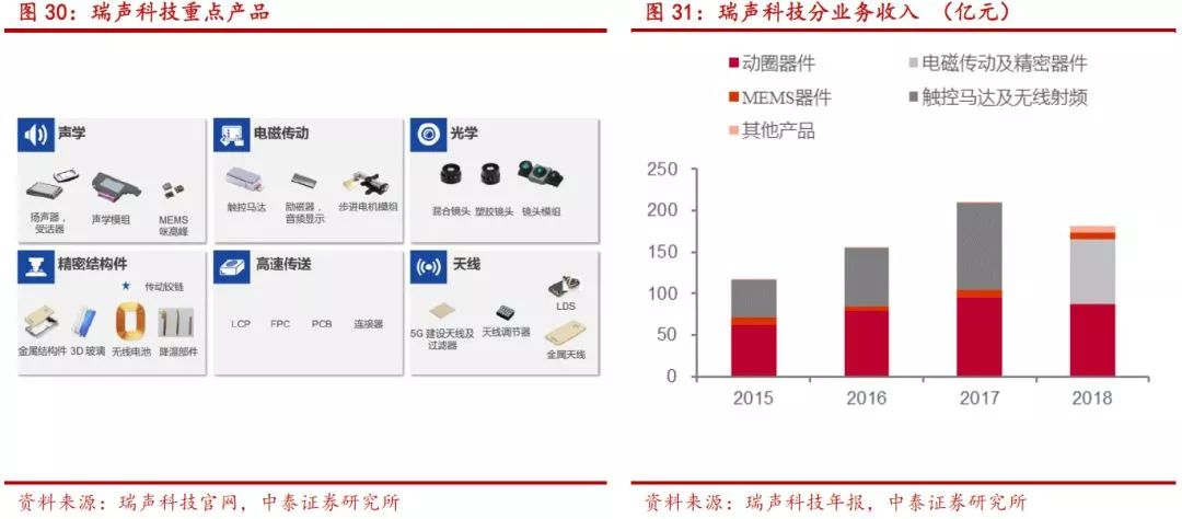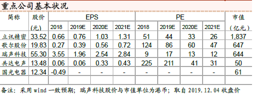 A股及港股声学器件重要标的包括MEMS麦克风、扬声器等供应商瑞声科技、歌尔股份、立讯精密等。