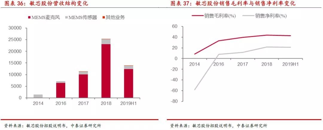 专注于MEMS传感器,具备芯片端开发实力。敏芯股份成立于2007年,目前正在IPO过程中。公司目前主要产品线包括MEMS麦克风、MEMS压力传感器和MEMS惯性传感器。公司在MEMS传感器芯片设计、晶圆制造、封装和测试等各环节都拥有了自主研发能力和核心技术,同时能够自主设计为MEMS传感器芯片提供信号转化、处理或驱动功能的ASIC芯片,并实现了MEMS传感器全生产环节的国产化。公司先后获得“2013年度十大中国MEMS设计公司品牌”、2016和2017年大中华IC设计成就奖、中国半导体行业协会2016和2018年“中国半导体MEMS十强企业”。