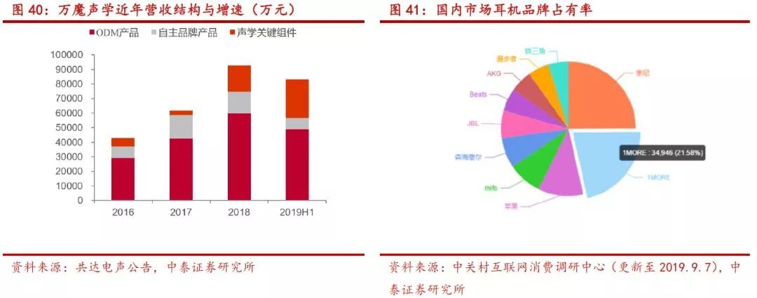 万魔声学主要通过ODM模式(提供原始设计)和OBM模式(1MORE自有品牌)开展业务经营,主要产品包括有线耳机、蓝牙无线耳机、智能真无线耳机、智能音箱、声学关键组件等,是国产TWS耳机重要参与者,有望深度受益于TWS行业发展。