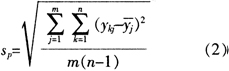 由式(2)计算得到的合并样本标准差的准确程度决定于根式中分母的大小。也就是说,如果每组的重复测量次数n不太大,通过增加所采用的组数m,同样可以得到较为准确的sp。