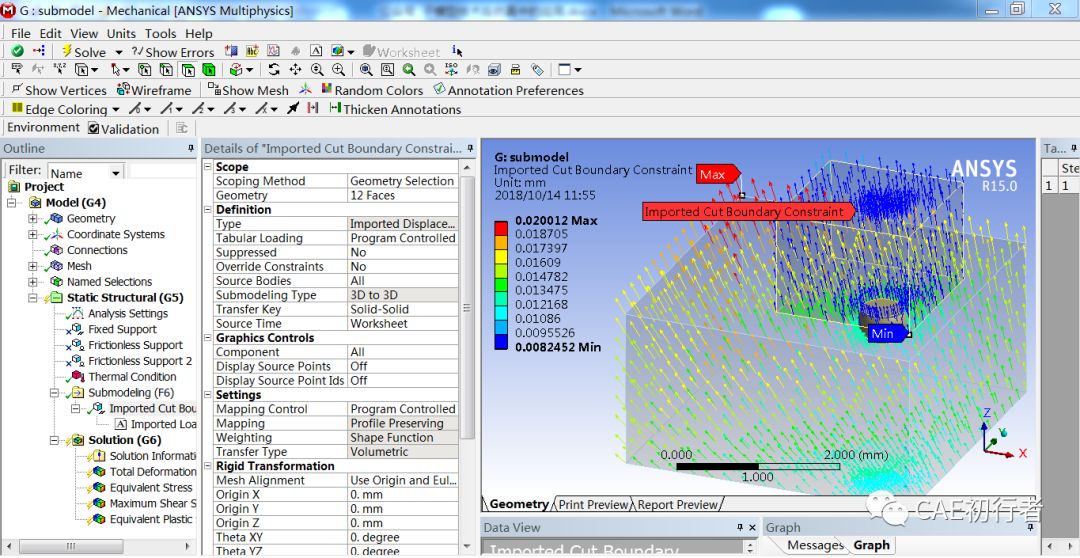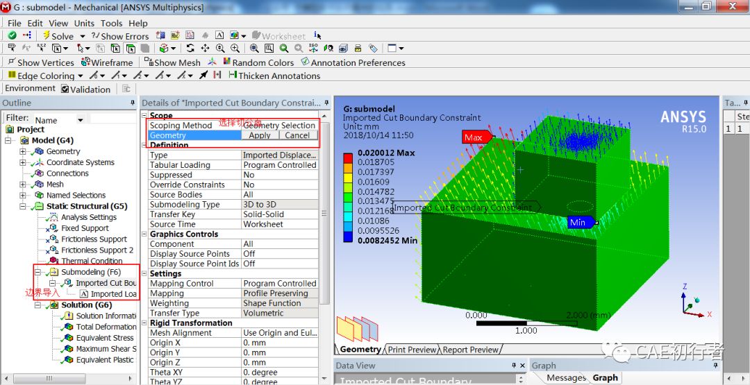进行求解设置如下,右键点击Submodeling,插入“Cut Boundary Constraint”,