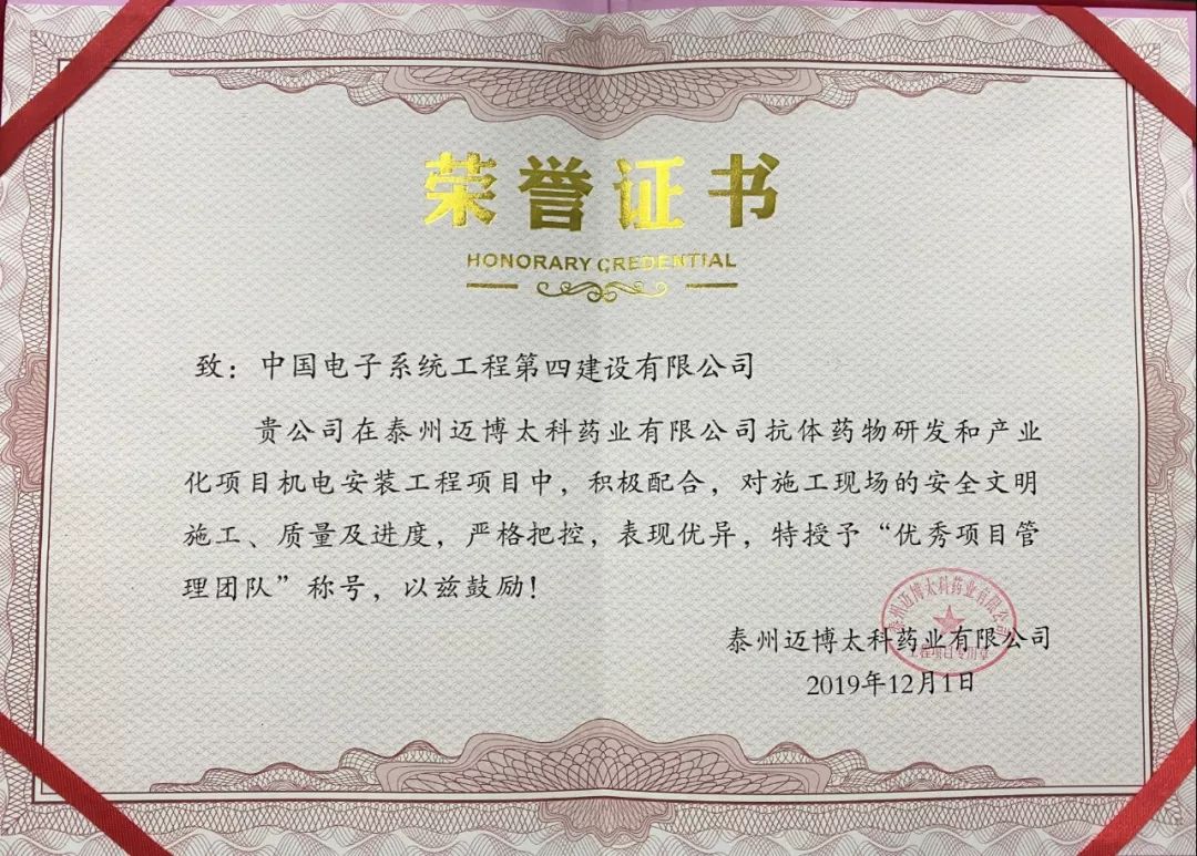 〇 泰州迈博太科项目获“优秀管理团队”称号