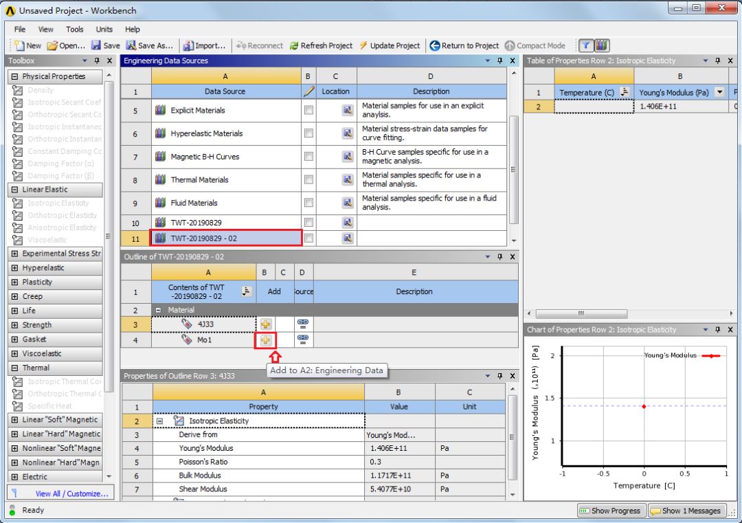 双击 Engineering Data 进入Engineering Data 编辑环境,如图 2 。