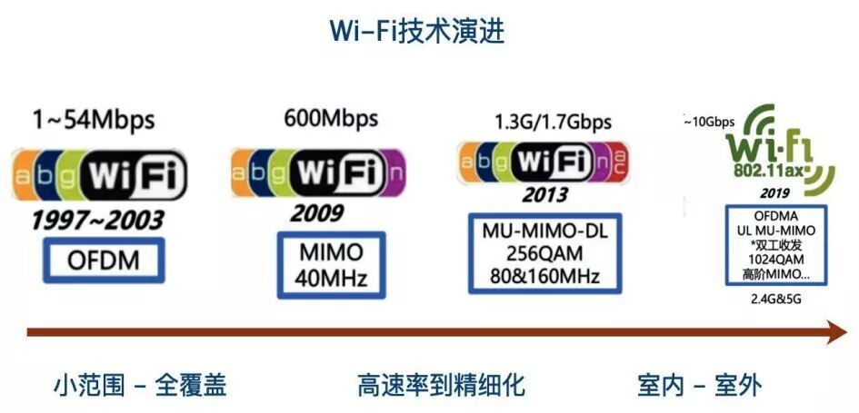 2018年10月3日,Wi-Fi联盟(Wi-Fi Alliance)将基于802.11ax标准的WiFi协议正式纳入正规军,成为第六代WiFi技术。借着这个机会,联盟又将WiFi规格重新命名,之前标准802.11n改名WiFi 4,标准802.11ac改名WiFi 5,新标准802.11ax改名WiFi 6。