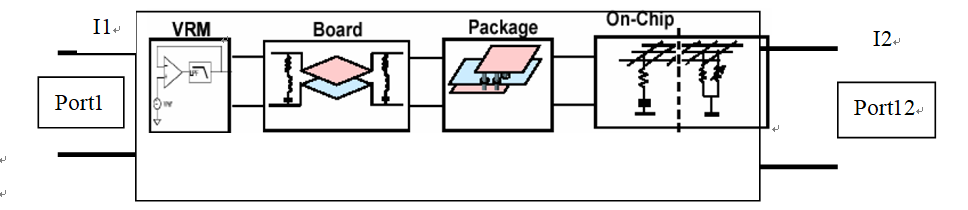 Z12、Z21通常被称为转移阻抗或者传输阻抗,Zij表示当j端口以Ii的电流特征切换时,在i端口上观测到的电压噪声。转移阻抗反映了不同电源引脚或者芯片之间的噪声干扰,通常用于研究电源网络之间的干扰及去耦电容的摆放。