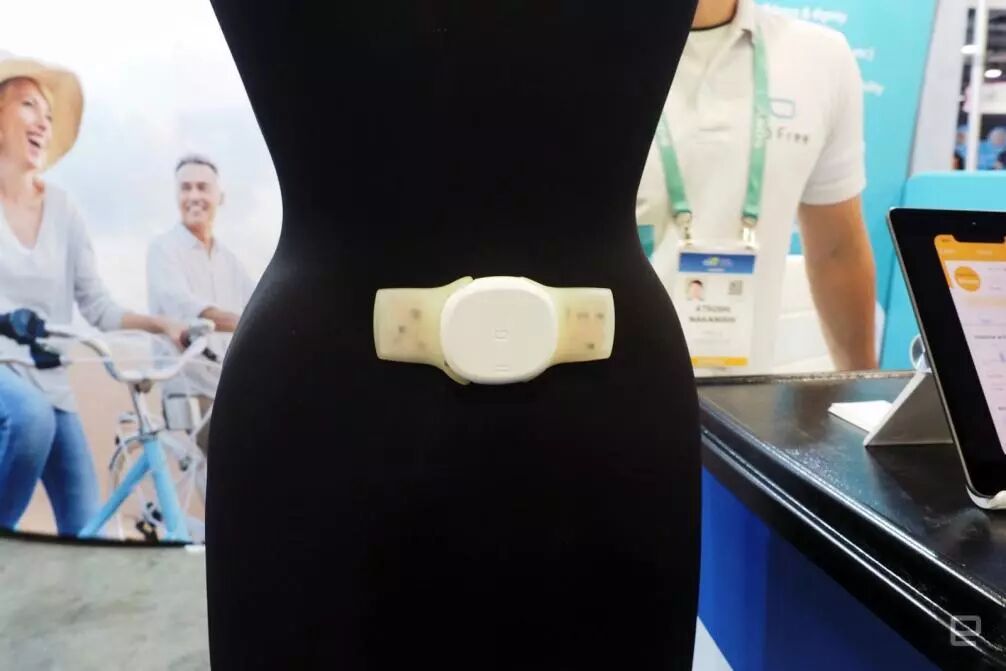 DFree是一种可穿戴设备,可以粘附在人们的肚子上,帮助人们检测肠胃问题。今年,Triple W再次展示了其用在DFree上的新型传感器原型B1。与之前将外部电池夹在腰上不同,今年新一代的B1在一个非常小的包装中,且同时具有电池和传感器,它可使用超声波来监视用户的肠道活动,并在达到适当强度时发出提醒,配套的应用程序能够显示用户“肠道活动的幅度”并跟踪排便细节。