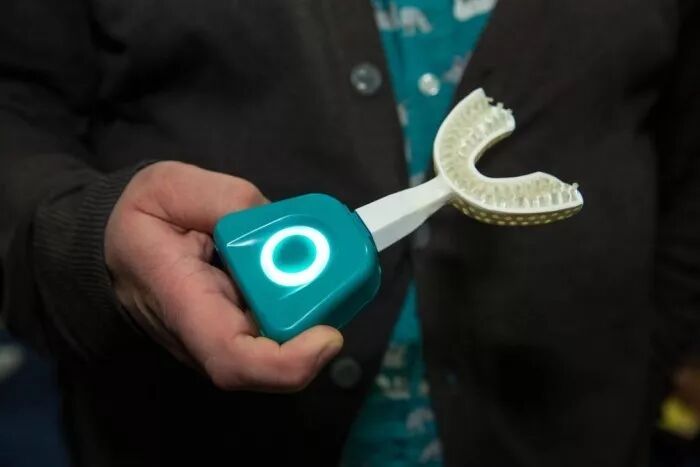 FasTeesH公司推出的Y-Brush Y型牙刷外形看起来像一个运动保护牙套,里面则是以45度角放置的尼龙刷毛。这把牙刷内置的马达通过振动完成对牙齿的清洁,仅需10秒就能完成整个刷牙过程。Y型牙刷有三种振动模式,从强到弱,充1次电大约能用1个月。该牙刷标准版整套售价125美元。