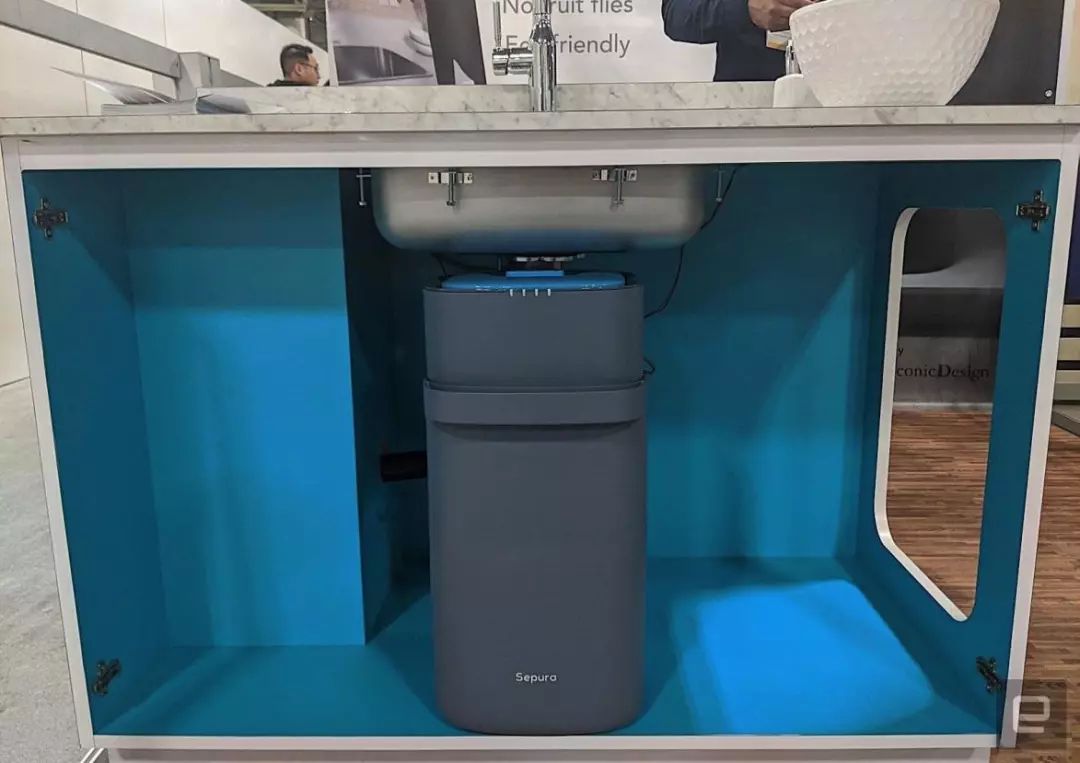 常规的垃圾处理只是将食物残渣粉碎成足够小的块状,以使其可以通过下水道,而Sepura能自动将固体与液体分离,将前者存放在防臭的收集箱中,然后倒入后院堆肥。