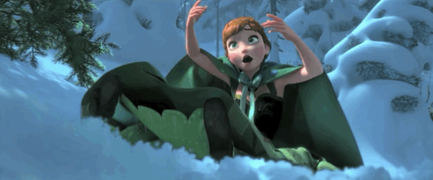 比如,在迪士尼动画工作室发布的一段介绍视频中,该工作室将粒子变成雪的形态,并建立了多种状态下的不同物理模型,使其看起来更逼真,这才有了我们见到的安娜摔在雪堆里的场景↓