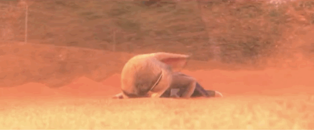 当粒子变成沙,就有了我们在《疯狂动物城》里看到的兔子朱迪被风吹倒,然后被埋在沙堆中的场景↓