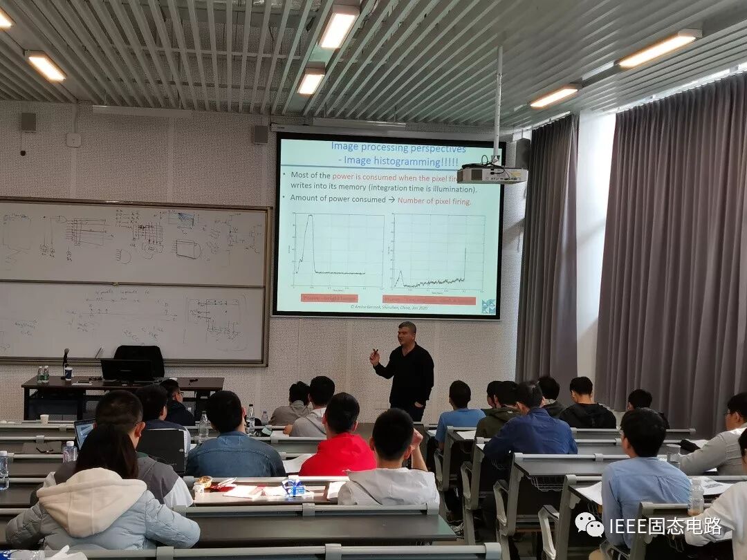 In the afternoon, Prof. Bermak introduced the design of CMOS image sensor. He gave a general review imager with different architecture of pixel designs, including active pixel sensors, PWM sensors, and AER based image sensors in turn. Based on the test results, he analyzed advantages and disadvantages of the three kinds of image sensors.