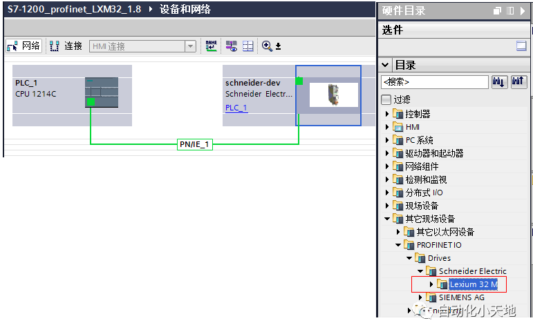 施耐德电气LXM32M系列伺服通过扩展VW3M3308通信卡可支持Profinet总线,本文主要介绍西门子PLC通过Profinet控制LXM32M伺服的实现。