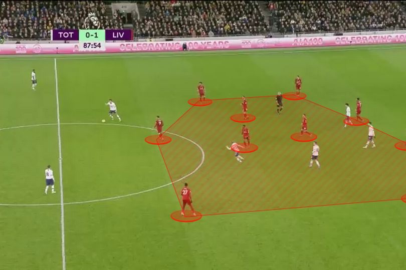 就在这个时候,对方球队的球员巴米德莱·阿里 (Dele Alli)成功控球,情况瞬间对利物浦相当不利。然后迷惑一幕出现了,利物浦队根据后方的数据,在球场中形成了一个下面这样的马桶阵型,成功抵挡了对手的进攻,让利物浦队连续六场球赛中一球未丢。