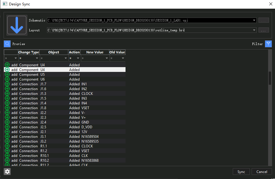 同步参数都设置完成以后,点击Sync按钮,就可以完成原理图到PCB Layout的同步操作。