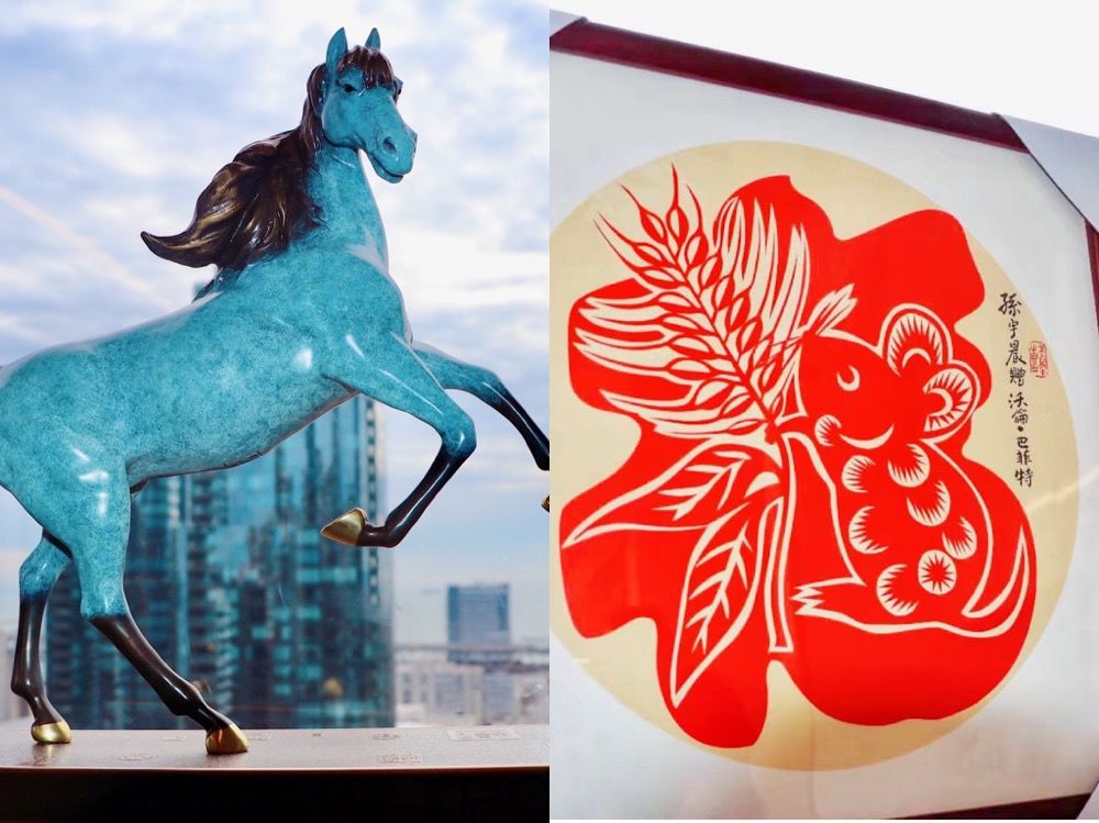 除此之外,孙宇晨还赠送了巴菲特一座青铜马雕塑、一副中国传统剪纸以及自己写的一本书为礼物。