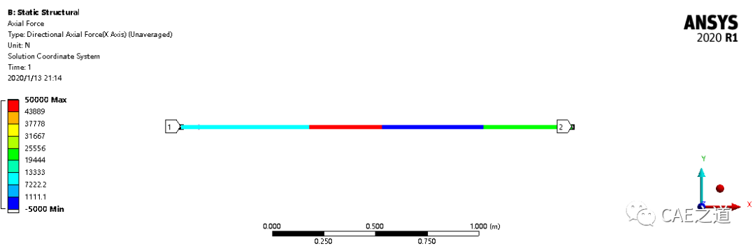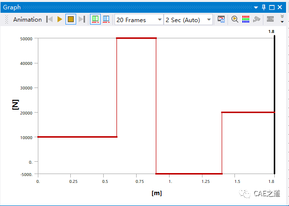 在图形区,我们可以看到计算的轴力结果;在Graph中,我们可以看到轴力图。与材料力学解法得到的结果完全一致。