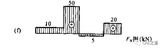 FN1=10kN;FN2=50kN;FN3=-5kN;FN4=20kN,轴力图如下: