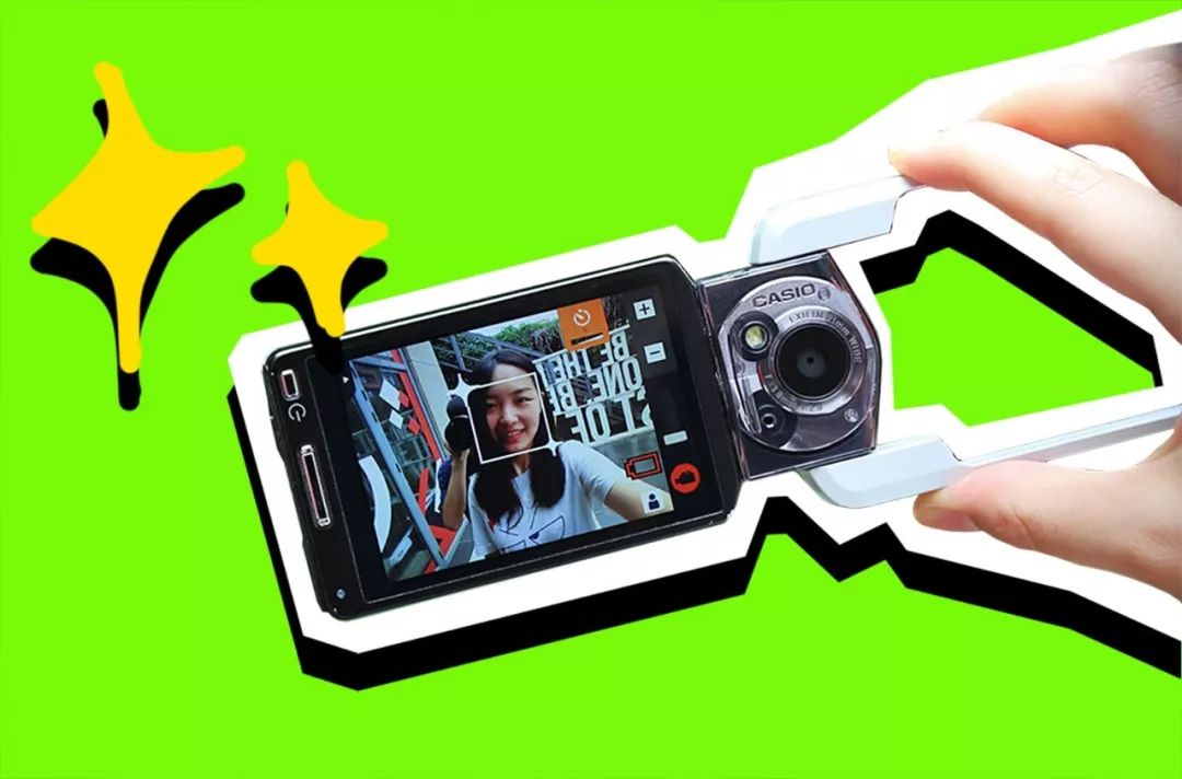 后来,拍照功能成为了越来越多手机的标配,但几十万像素的前置摄像头拍出来的照片还是和「好看」没什么关系。直到 2011 年,主打自拍的卡西欧 TRYX 相机发布了,其自带的美颜在拍照时总能让人随手一拍就很好看。