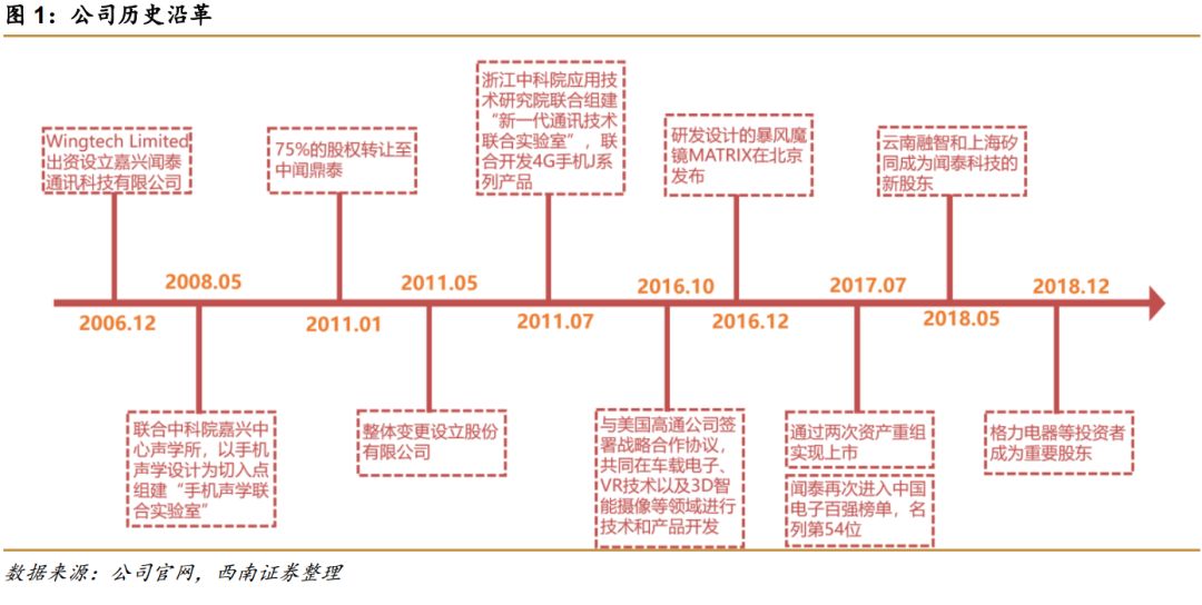 嘉兴闻泰通讯科技有限公司成立于2006年12月31日,由外国企业法人Wingtech Limited以1000万美元出资设立。2008年9月11日更名为闻泰集团有限公司,2011年5月20日整体变更设立股份有限公司,并更名为闻泰通讯股份有限公司。