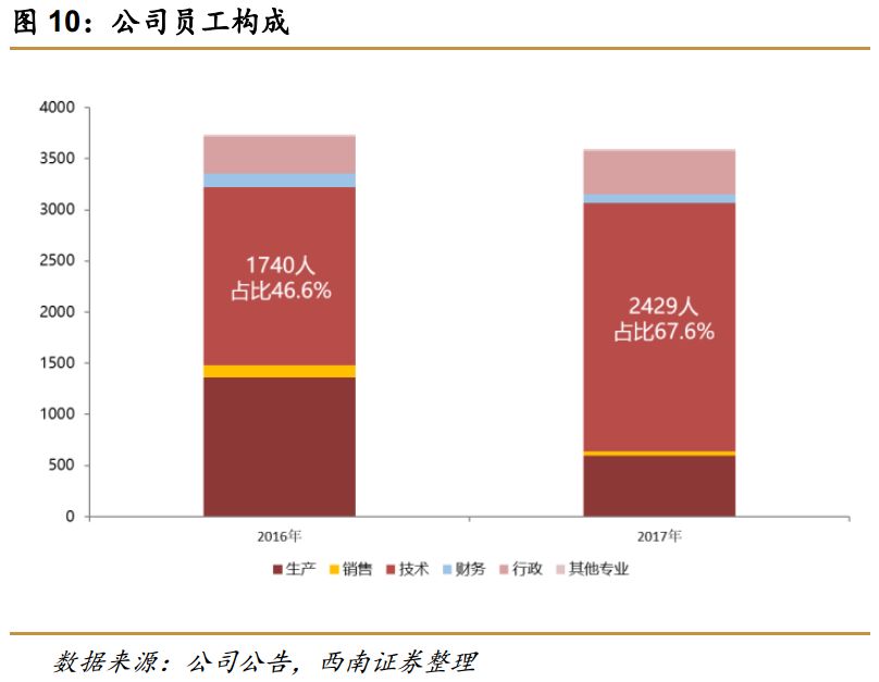 闻泰科技目前拥有上海、深圳、西安三个研发中心和嘉兴生产基地。其中上海,深圳和西安主要负责研发,共有2000多人;嘉兴是生产基地,负责供应链和生产制造,员工1.4万人。嘉兴工厂生产组装产能目前月产能500万部,随着客户合作稳定以及出货量提升,2018年将继续扩充产能。闻泰对于自有工厂产能扩充相对较为保守,策略保证其工厂在淡旺季均满负荷运行,多余产能外包第3方EMS公司。闻泰目前智能机业务营利模式重点在于设计和研发,生产制造为辅。