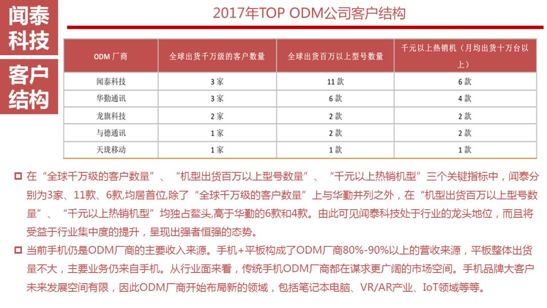 ODM领域:强者恒强,稳居龙头地位