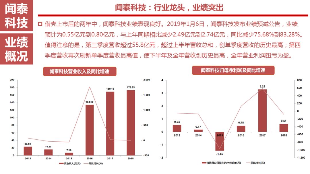 2019年1月6日,闻泰科技发布业绩预减公告,业绩预计为0.55亿元到0.80亿元,与上年同期相比减少2.49亿元到2.74亿元,同比减少75.68%到83.28%。值得注意的是,第三季度营收超过55.8亿元,超过上半年营收总和,创单季度营收的历史最高;第四季度营收再次刷新单季度营收最高值,使下半年及全年营收创历史最高,全年营业利润扭亏为盈。