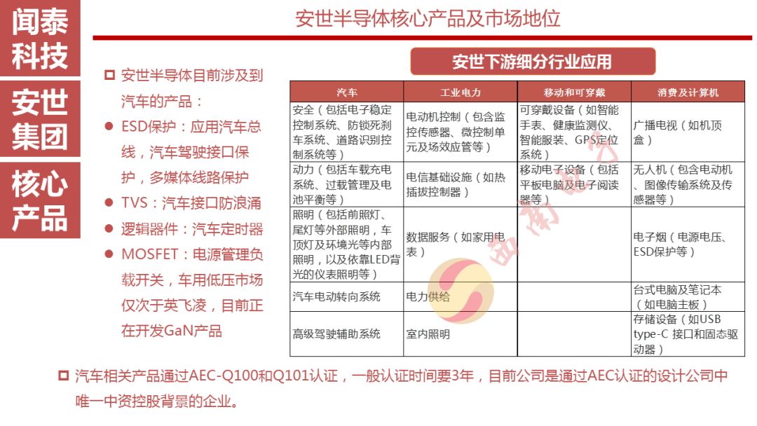 此次收购正值安世半导体经历一个非常成功的时期,其表现明显优于市场预期,推出更多新产品,且年产能超过900亿颗。汽车电子是安世半导体的一个关键产业,该公司正在提升其不断激增的AEC q100 /101合格零部件的产品组合。公司在消费者、通讯和工业市场均处于领先地位。安世半导体不断创新,不断推出在功率、尺寸和性能上都更高效的新产品。