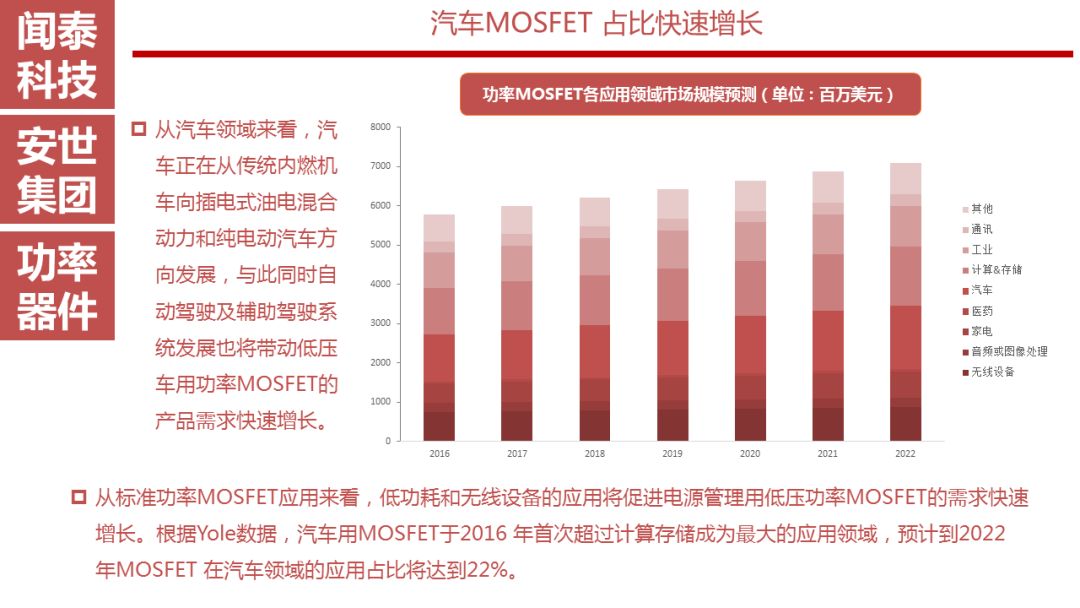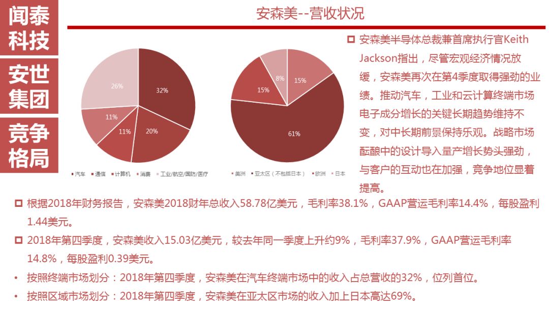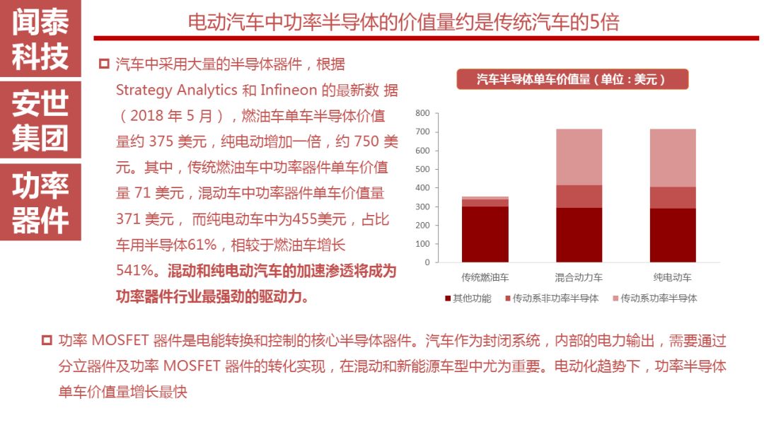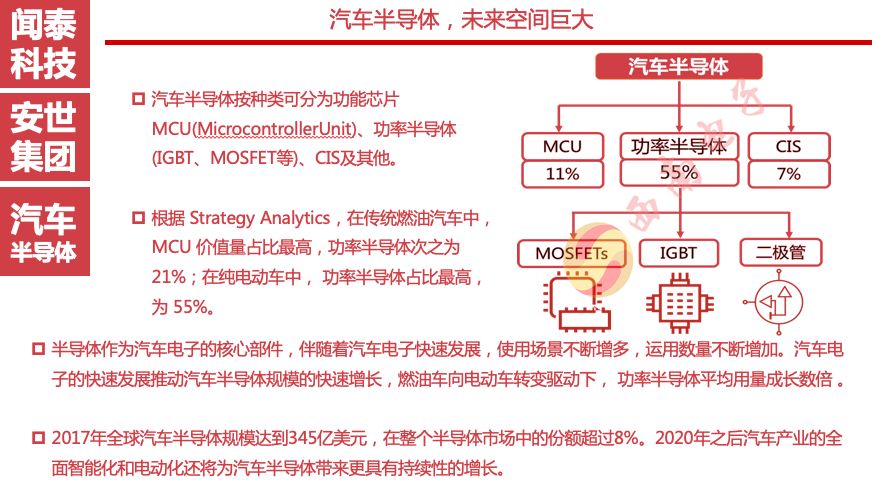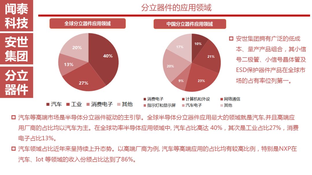 目前来看安世在汽车电子市场中占比很大,未来传统汽车的电子化、电动汽车的高速发展以及5G时代的到来都会带动汽车电子的发展,这将成为安世的优势。
