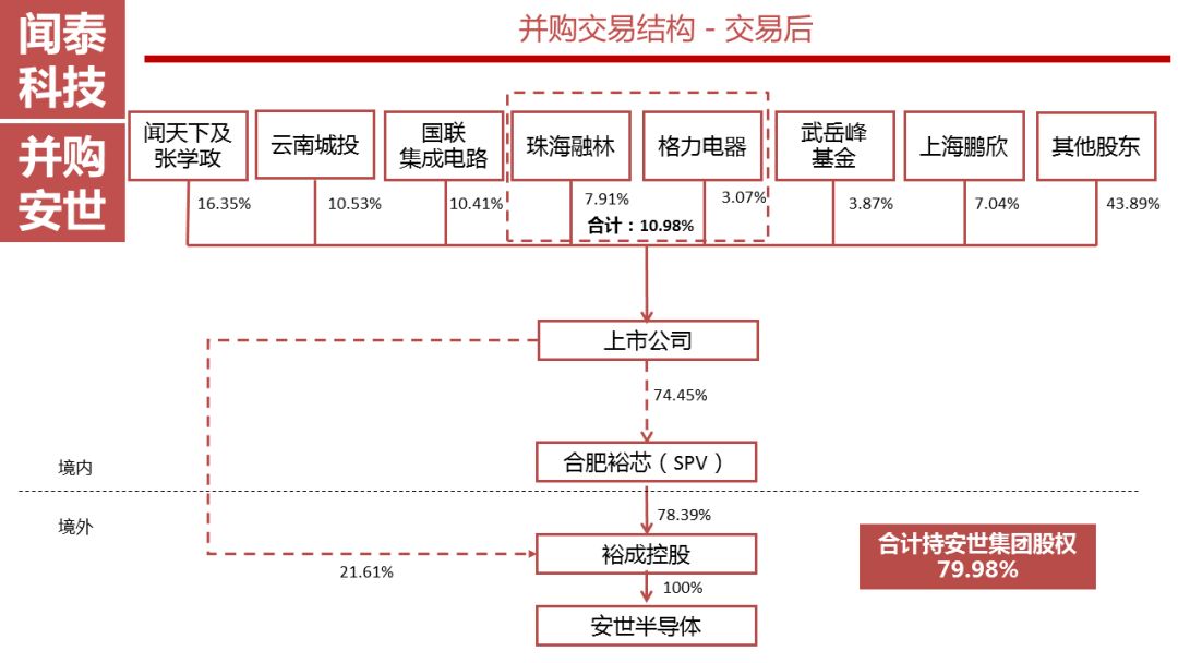 在收购安世半导体的同时,闻泰科技还引入格力电器等新资本方。自《闻泰科技股份有限公司发行股份及支付现金购买资产并募集配套资金暨关联交易意向性预案》披露后,公司积极与拟参与本次交易的资金方进行沟通,在本次交易拟引入了格力电器、港荣集团、智泽兆纬等投资人。格力电器共出资30亿元,其中8.85亿元用于增资合肥中闻金泰,其余21.15亿元出资至珠海融林。珠海融林拟引入投资者珠海威迪出资2.023亿元,珠海融林拟受让珠海融悦所持有的合肥广讯74.32%的LP财产份额调整为受让珠海融悦所持有的合肥广讯90.12%的LP财产份额。闻泰科技拟通过发行股份购买资产方式收购格力电器、港荣集团、智泽兆纬持有的合肥中闻金泰的股权以及珠海融林持有合肥广讯的LP财产份额。